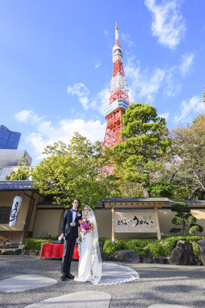 お気に入りのウェディングドレスとタキシードに身を包み、