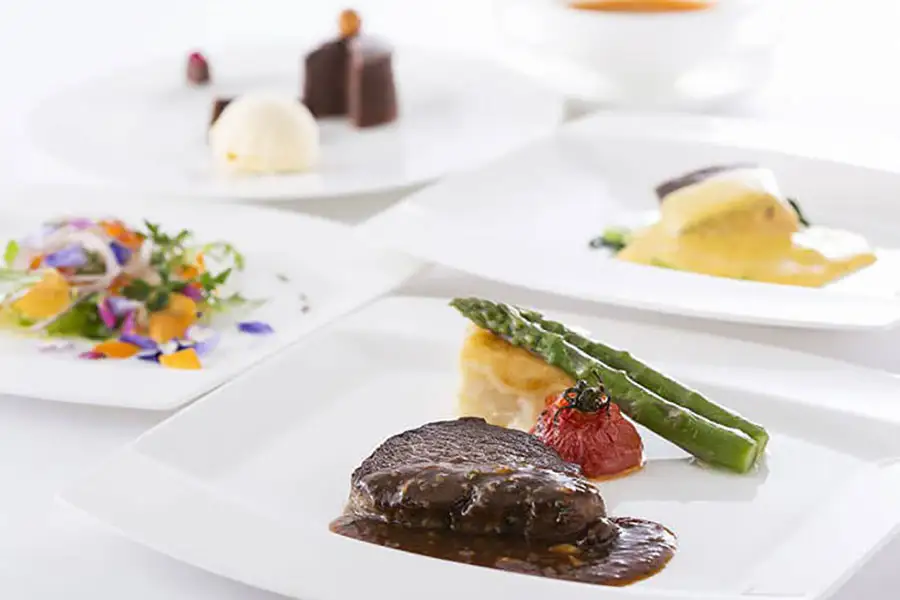 総料理長フィリップ・ルイ・エガロンが贈るワンランク上のフランス料理をお楽しみ頂けます。フィリップ・ルイ・エガロンシェフは、世界の5つ星ホテルを歴任したことがある総料理長です。フランス政府より、国に貢献した料理人として、「シェヴァリエ」の称号を受勲しています。また、ウエディングケーキは、フランス人パティシエ ダヴィッド・ギマレスによるケーキです。デザインそして上品な味は、ゲストを魅了し、満足させてくれることでしょう。